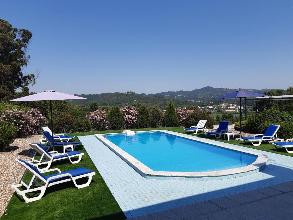 A casinhas dos meus Avós by Quinta do Paço disponibiliza uma piscina exterior sazonal, um jardim, comodidades para churrascos e um terraço em Amarante. A casa de hóspedes apresenta quartos familiares com ar condicionado, um roupeiro, um pátio com vista para a serra, uma casa de banho privativa, uma televisão de ecrã plano, roupa de cama e toalhas.